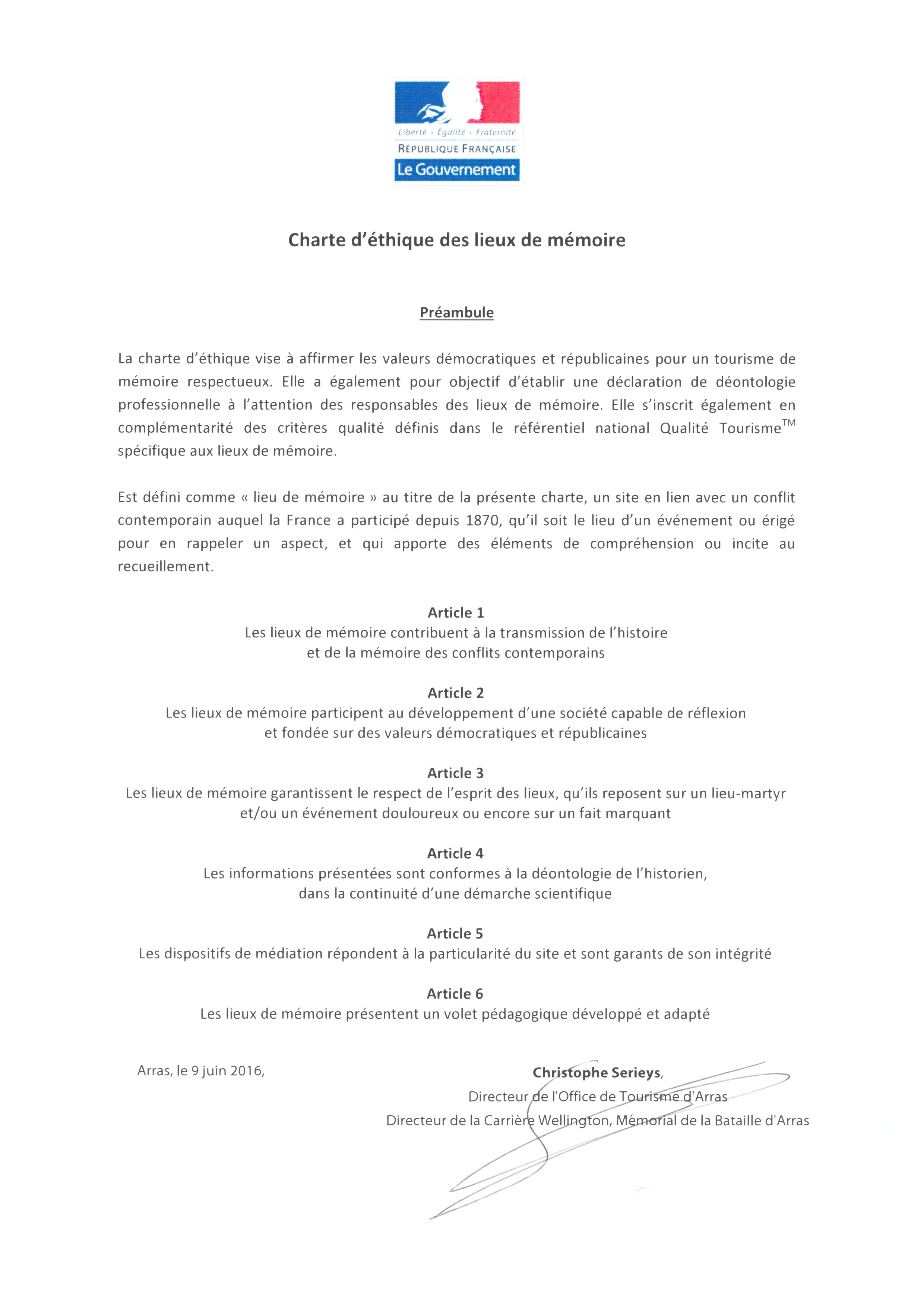 Charte d'éthique des lieux de mémoire : La Carrière Wellington